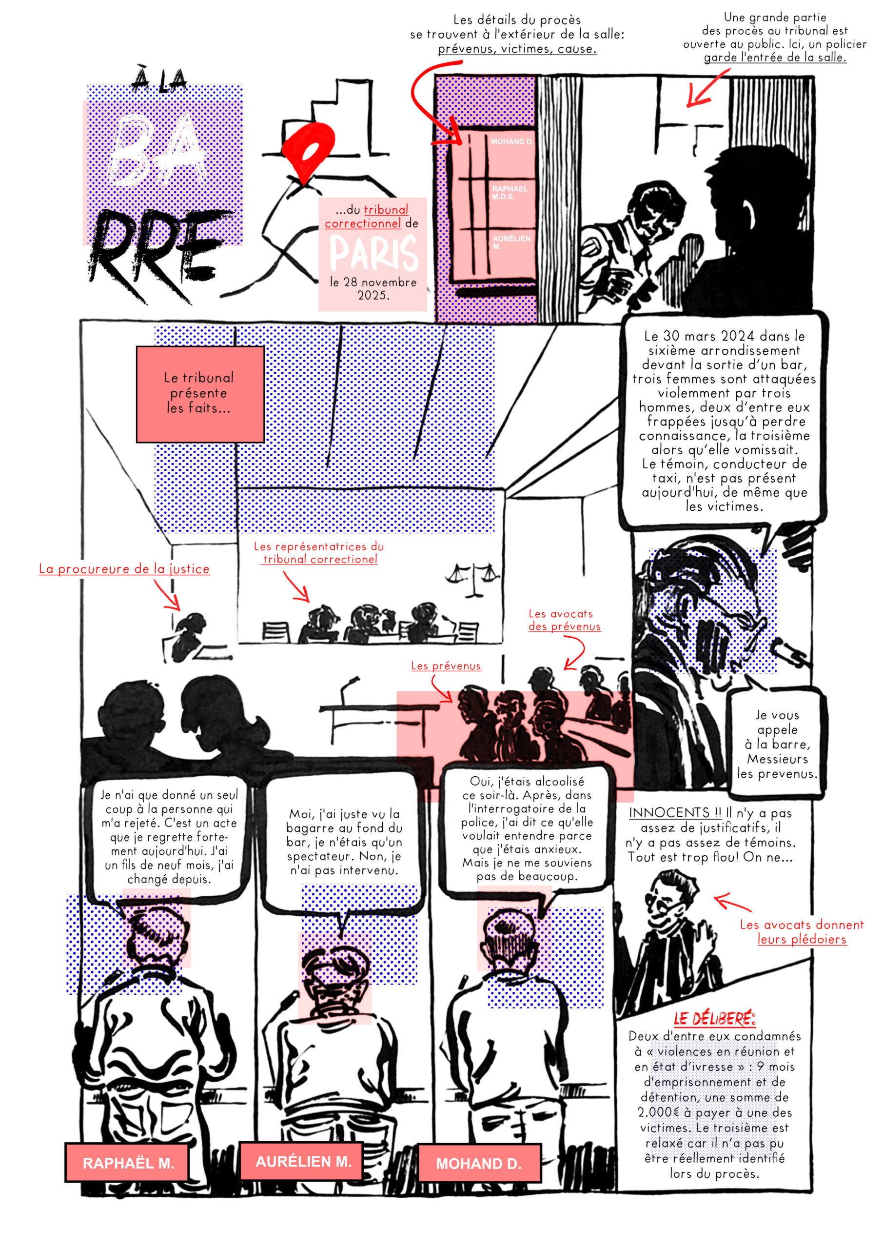 Documentation d’un procès au tribunal correctionnel de Paris. / Dokumentation eines Gerichtsprozesses vor dem Strafgericht von Paris.